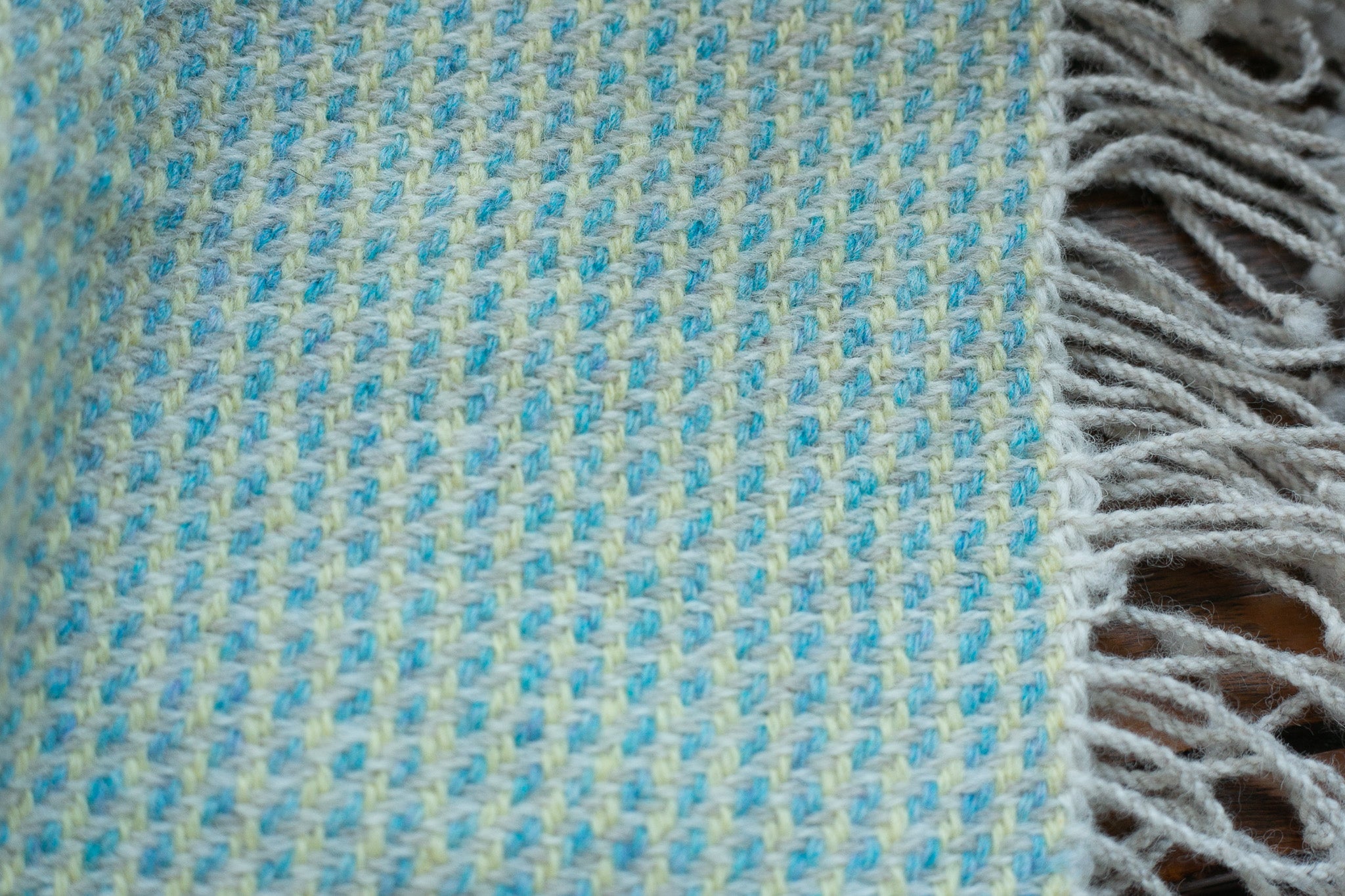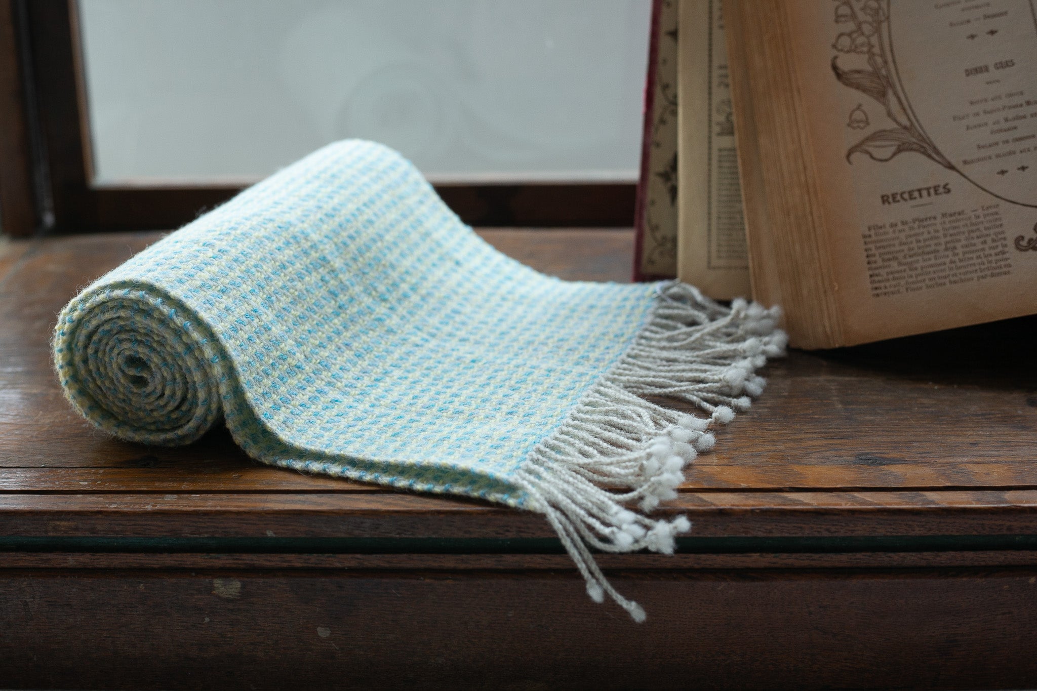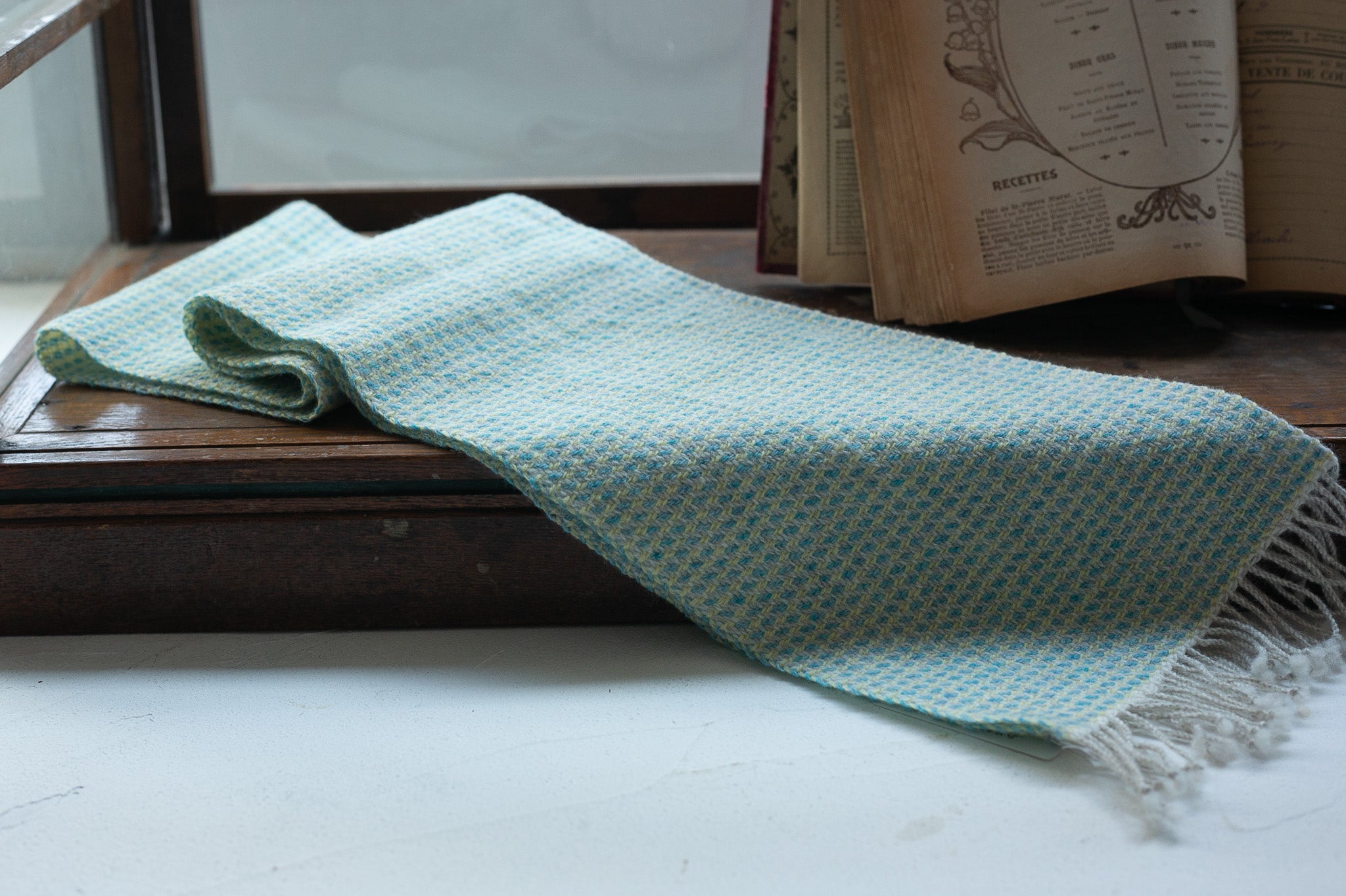 やさしい中間色がふわりと混ざり合う、あや織りのマフラー。