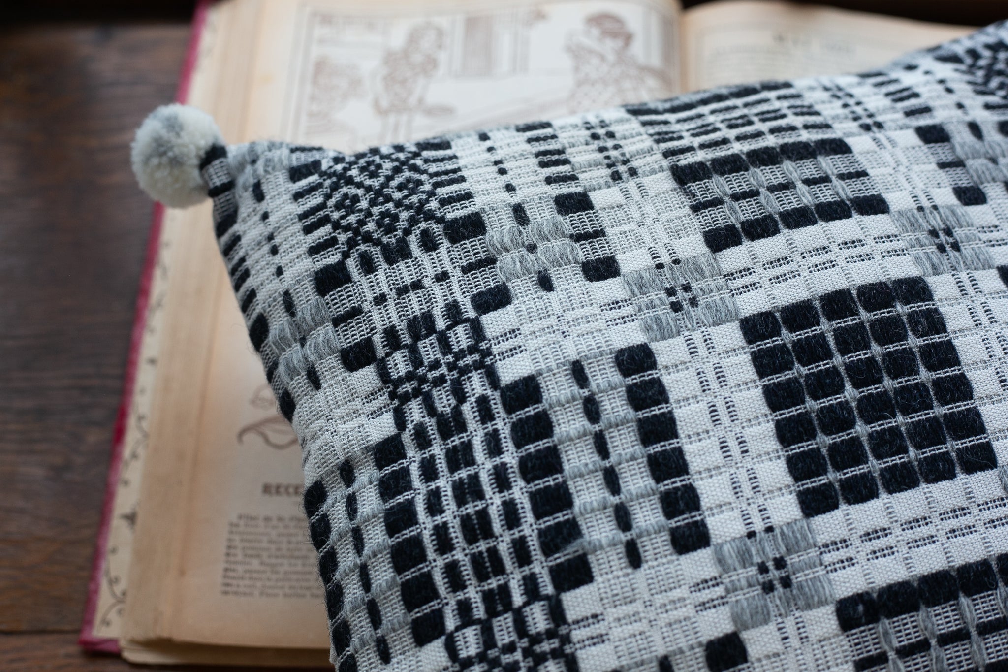 伝統的なスウェーデンのダーラドレル織りを施した、小さめのクッションです。
